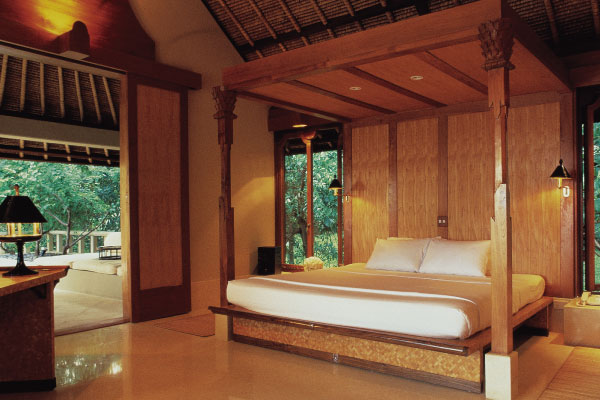 かつては王国が栄えた、バリ島東海岸マンギスにロンボク海峡をのぞむ斜面に創られたのが「水の王宮」をイメージしたアマンキラ。 バリ島内のアマンリゾートでは唯一のオンザビーチです。 アマンキラは『平和な丘』の意味をもち、海へ流れ落ちるようなプールと白亜の回廊で結ばれたヴィラが印象的なリゾートです。 伝統的建築を踏まえ装飾を抑えたモダンな造りの客室内は、随所に取り入れられた貝殻や椰子細工の調度品が、シンプルな内装にさりげなく色を添えています。