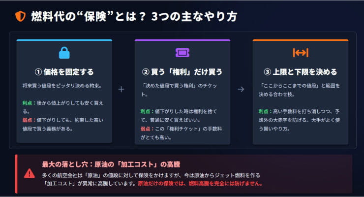 燃油ヘッジは確かに重要ですが、あくまで有効な対策の一つであり、万能ではないという点は押さえておきたいポイントです。