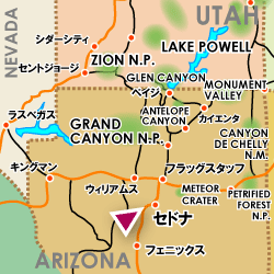 大地から渦巻状に発する強いエネルギー、ヴォルテックスが点在するセドナは、癒しの町、スピリチャルパワーが宿る町として、 古くからアメリカでは有名な町です。場所はフェニックスより北に2時間、グランドキャニオンから南に2時間に位置しています。レッドロックと呼ばれる真っ赤な岸壁のような一枚岩の山々が個性的に並ぶ景観は、まさにスピリチャルという言葉がピッタリ似合うスポットです。