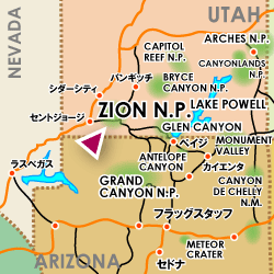 ザイオン国立公園はラスベガスから車で約3時間、ゲートシティはユタ州、セントジョージになります。ブライスキャニオンにも近く、2つの国立公園を一緒に訪問するのがスマートチョイス。 壮大なスペクタクルで迫る巨岩は、まさに神様の庭。 世界最大級の一枚岩 グレート・ホワイト・スローン、「天使の舞い降りるところ」というロマンティックなネーミングの尖った赤い独立峰、エンジェル・ランディング が見どころ。