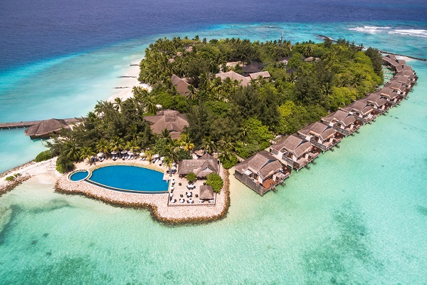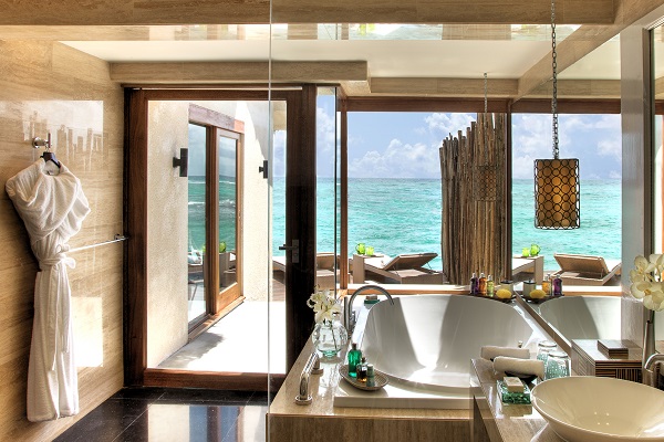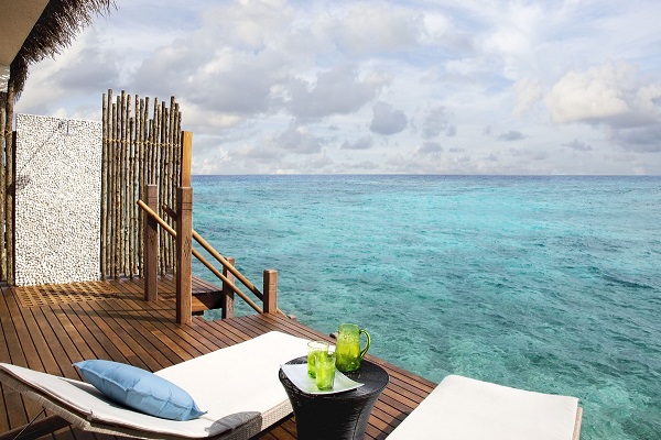 ハウスリーフ(サンゴ)が豊富で、シュノーケリングを楽しみたい方におすすめです。 桟橋付近にエイが訪れるので餌付けをすることが出来ます。水上ヴィラは(半水上タイプ)入り口がビーチサイド、テラスが水上。部屋の内装はシックで落ち着いており、海を眺めながらバスルームに入ることもできます。
