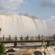 多くの滝がアルゼンチン側にありますが、イグアスの全景が見渡せるのがブラジル側の特徴です。遊歩道からはイグアスの滝の中でも最大の滝「悪魔ののどぶえ」が正面に見え、迫力ある景色が楽しめます。 国立公園内はバスとエレベーターを使って滝を見て回ることができるので、半日ほどでイグアスを堪能できます。アクティブ派の方には、ラフティング、ロッククライミング、アブセイリング、ヘリコプターツアーなども充実しています。 事前に予約されることをお勧めします。