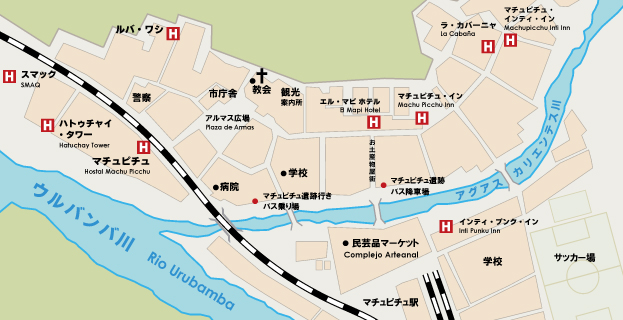 少し前までは、アグアス カリエンテス(熱いお湯)という名前でしたが、今ではマチュピチュ村と言います。「熱いお湯」、つまり日本で言う温泉街の雰囲気のする場所です。村(町)の至るところに観光客向けの御土産屋があり、 土地柄、欧米人向けのレストランも多々目にします。世界各地よりトラベラーを受け入れる場所だけあり、インターネットカフェをはじめ、必要なものは全て揃います。マチュピチュ遺跡へのゲートとして十分機能した町と言えます。