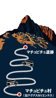 マチュピチュ村から遺跡への移動は、「シャトルバス」を利用します。マチュピチュ駅に到着すると、土産物屋が沢山立ち並ぶ通りが目の前に広がり、そこを通り抜けると、マチュピチュ遺跡へのシャトルバスが停まるバス乗り場があります。遺跡までの所用時間は、「約30分」。シャトルバスの運行時間は、往路(登り)が朝5:30~14:30で、復路(下り)は、11:30~17:30の間。乗客が集まり次第、随時出発するかたちです。バス料金は片道US$8、往復US$15.5です。マチュピチュ村で宿泊する場合は、最終バスの時間までマチュピチュを見学できるので、宿泊することをお勧めします。