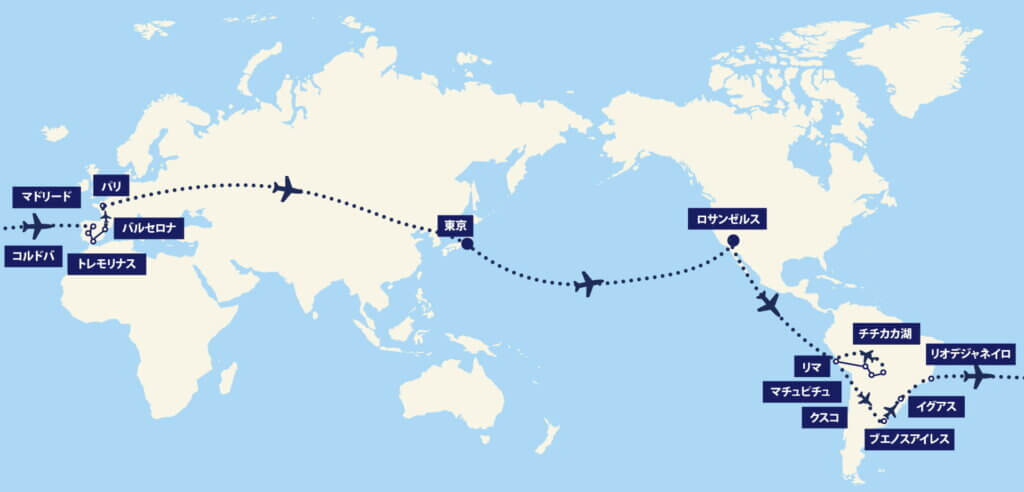 また、「世界一周航空券」といっても、世界中どこへでも自由に行けるわけではありません。前項で説明した通り、世界一周航空券は複数区間の航空券をまとめた“航空券の束”であり、利用できるのはその区間を実際に運航している航空会社(自国または相手国の航空会社)に限られます。