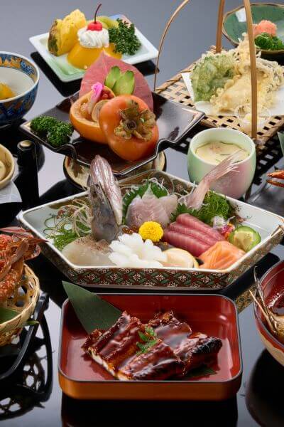 【夜】旅館にチェックイン後、夕食は鮎の塩焼きや鮎懐石など川魚づくしの会席料理や高知流おきゃく(宴会文化)体験で地元の人々とふれあいながら地酒&皿鉢料理を堪能