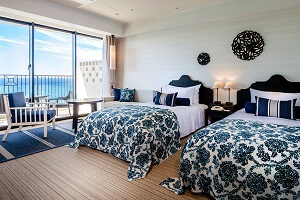 ホテルの目の前には遠浅で透明度が高いタイガービーチが広がり、全客室オーシャンビュー・バルコニー付!天然温泉の浴室やサウナもあり、料金不要でお楽しみいただけます。客室は欧風のお洒落なインテリアで女性のお客様からも人気。お部屋の浴室には、まるで美顔器のようなシャワーヘッド「ミラブル」を導入ワンランク上のバスタイムをお楽しみください。
