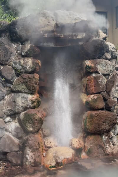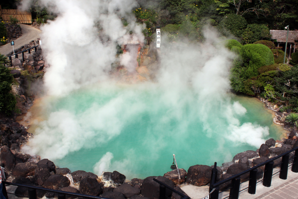 ⑦龍巻地獄:勢い良く噴出する迫力の間欠泉 【夕方】海を望む宿にチェックイン(露天風呂付き客室) 【夜】地元食材を使った創作和会席(豊後牛、関あじ、関さば)+部屋で温泉 【2日目】 【朝】宿の朝風呂で朝日を眺める 【午前】