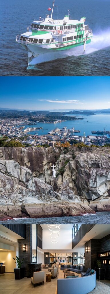 【夕方】常盤桟橋にて解散 【夜】長崎の夜景を見ながらディナーをお楽しみください 【2日目】 【朝】長崎港(7:40発)~ジェットフォイル~福江港(9:05着)・・午前中フリータイム・・ 12:40 福江港ターミナル集合 【現地ツアー「キリシタン物語」に参加】福江港(13:00発)~~定期船~~奈留港 -奈留島世界遺産ガイダンスセンター -- 江上天主堂 -- 奈留港-- 旧五輪教会堂 ・・(徒歩)・・ 五輪駐車場 -- 牢屋の窄殉教記念教会 -- 田ノ浦港~~ 福江港(17:30着)・(徒歩)・GOTO TSUBAKI HOTEL(宿泊)