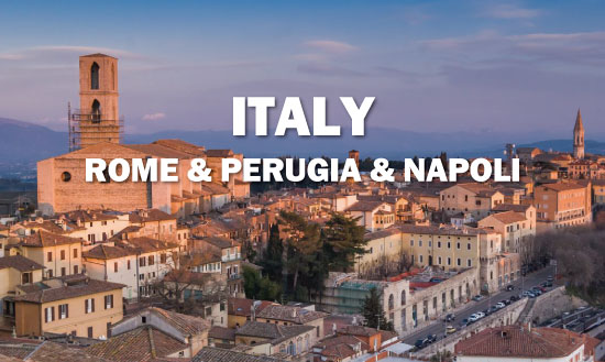 試合観戦はもちろん、ペルージャの街並みや歴史的な観光スポットも堪能してください。試合の前後には、ペルージャのカフェでのんびりとイタリアンコーヒーを楽しんだり、地元のレストランで美味しいイタリア料理に舌鼓を打ったりと、充実した時間を過ごすことができます。又、ピザの発祥地でもあるナポリもローマから日帰りで訪れます。ポンペイ遺跡やヴェスヴィオ火山、カプリ島など、見どころが盛りだくさん!永遠の都ローマにも、世界的に有名な観光スポットが数多く存在します!