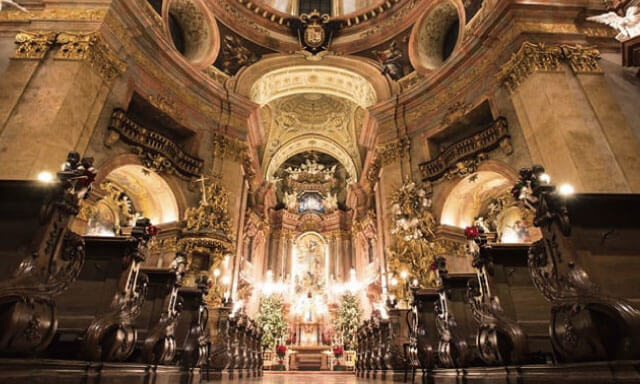 音楽の都ウィーンの美しいペータース教会にて、気軽に教会コンサートに酔いしれてみませんか?4人の演奏者によるモーツァルトやベートーヴェンの弦楽四重奏曲で、忘れられない夜になることでしょう。旧市街の中心に位置し、アクセスが便利な点も魅力です。