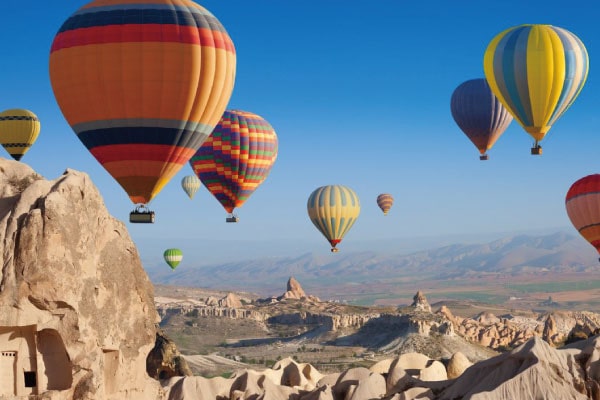 | ⑦ | 【早朝】熱気球ツアー 日の出とともにカッパドキアの奇岩群や広大な風景を空から眺めることができます。色とりどりの気球が空に浮かぶ光景は、まさに幻想的です。 【午後】カッパドキアから、空路、乗り換え日本へ 【機中泊】 |