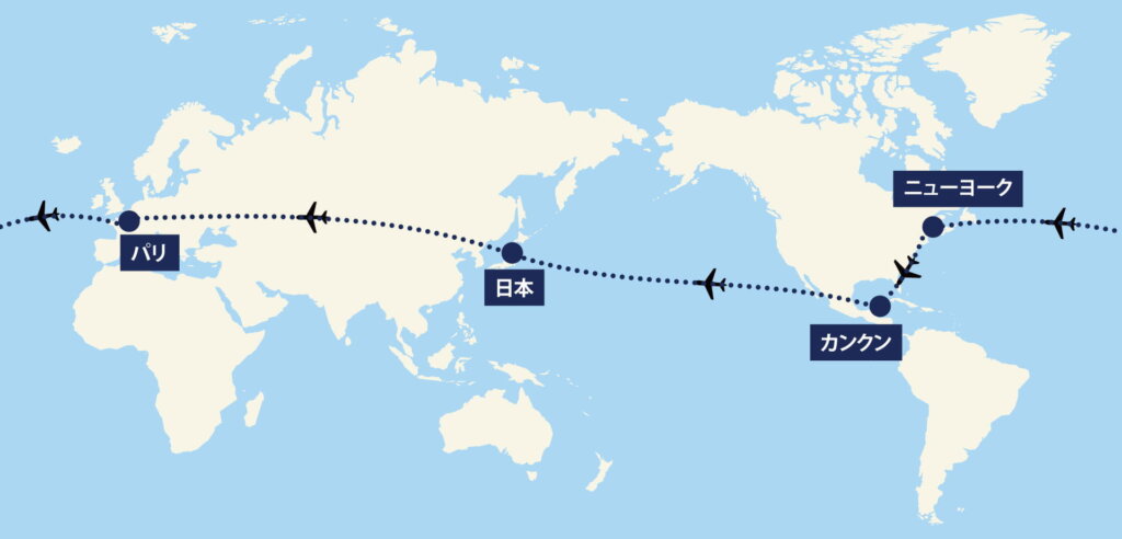 | ⑨ | 【午前】アメリカ都市を乗り継ぎ、空路、日本へ~【機中泊】 |