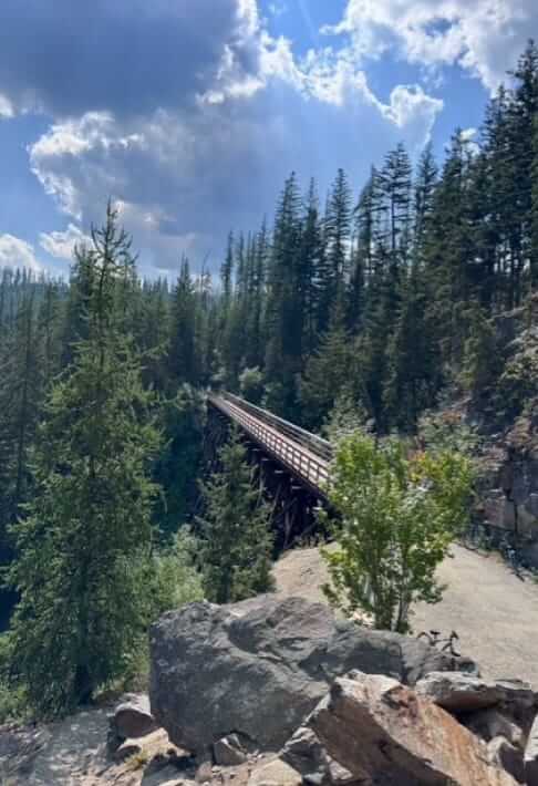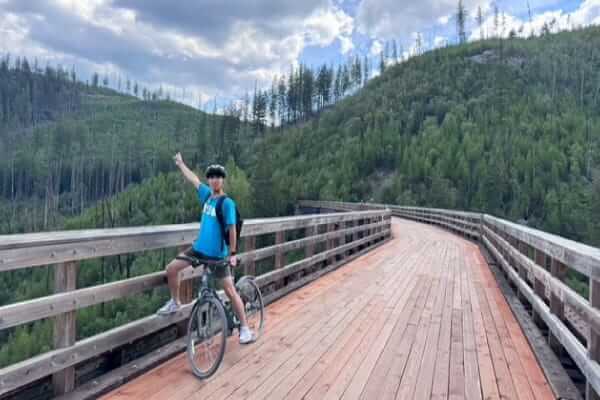 街から車で30分くらいのところにある Myra Canyon では、鉄道跡地を利用したコースのサイクリングを楽しめる。往復24km !? ビビることなかれ、写真映えする絶景スポット続きで、かつ平坦な道のりだから、全く疲れ知らずにまわれてしまうのが不思議〜。(自転車レンタル、4時間C$48)