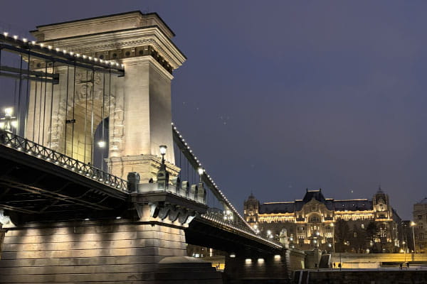 ウィーンから電車での日帰り旅行でしたが、ブダ城や中央市場を巡り、クルーズ船から見た雪の中に光る国会議事堂の景色は圧巻でした