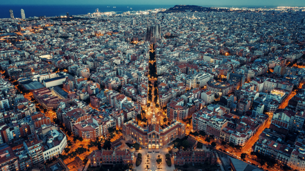バルセロナはスペイン・カタルーニャ州の州都であり、同国2位の人口を誇る都市であり、世界有数の観光都市である。空から見ると碁盤の目の上に街が設計されている。サグラダ・ファミリア教会、グエル公園、カサ・ミラなど建築家アントニ・ガウディが残した建築物は作品群として世界遺産に登録されている。