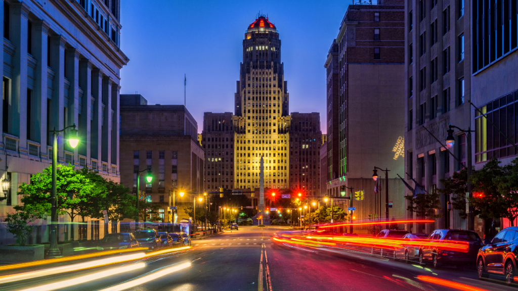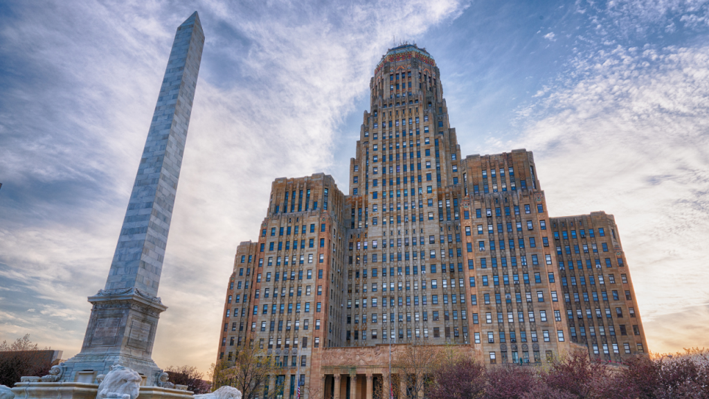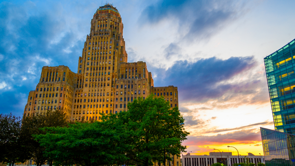 ニューヨーク州北西部エリー郡の都市である。同名の都市はアメリカ国内に多数存在するが、そのうち最大の人口を抱え、知名度が最も高い都市である。アメリカ五大湖東端の都市で別名「五大湖の女王都市(Queen City of the Lakes)」と呼ばれています。アメリカ側におけるナイアガラ観光の起点にもなっています。