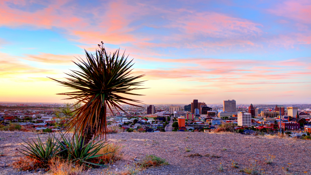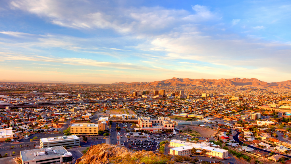 テキサス州の最西端に位置するエルパソは、アメリカにいながらメキシコを感じられる都市です。リオグランデ川を挟んで、メキシコ合衆国シウダーフアレスと接しています。1年のうち300日以上は晴天といわれ住民は気候のおかげで陽気でフレンドリーで過ごしやすい。ヒューストンとロサンゼルスのほぼ中間にある。
