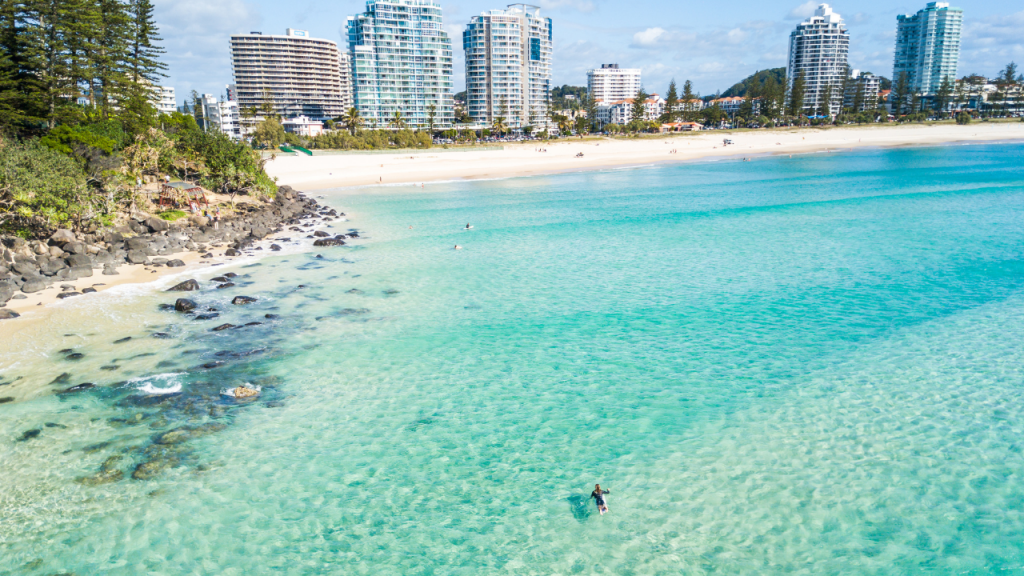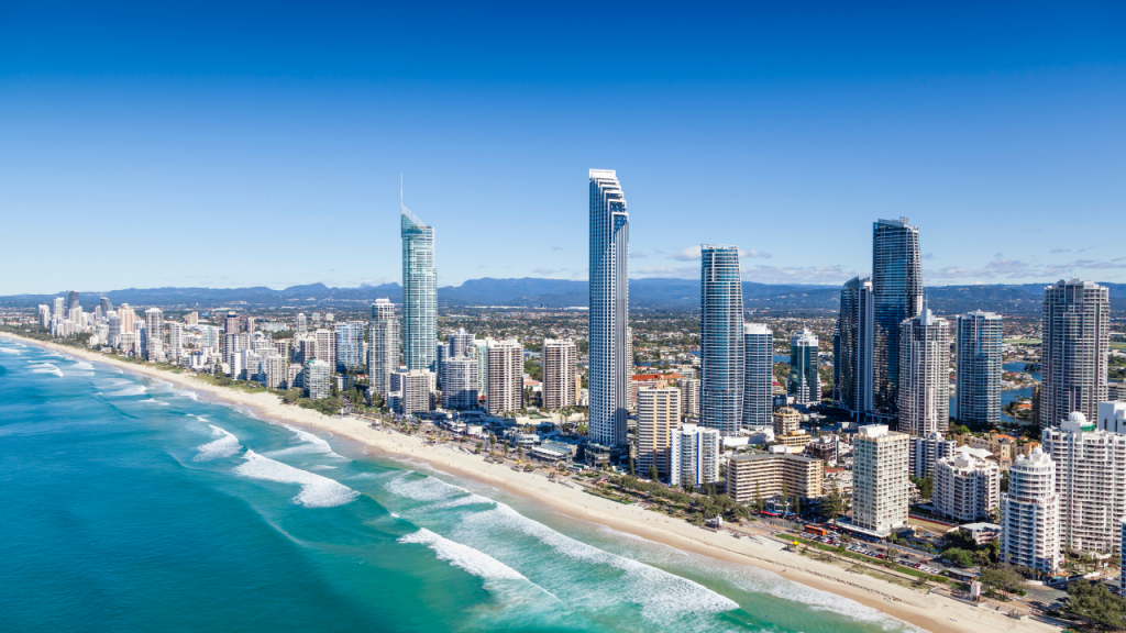 ゴールドコーストは、クイーンズランド州南東部にある都市である。オーストラリア最大の観光保養地として世界的に有名である。市の東部は海岸線が北から南まで約57kmにわたって広がっており、オーストラリアでも非常に人気のあるサーフポイントがいくつかあるが、その中でもサーファーズ・パラダイスは一番有名なビーチとして知られている。また、ドリームワールドやシーワールドなど多くのテーマパークがある。