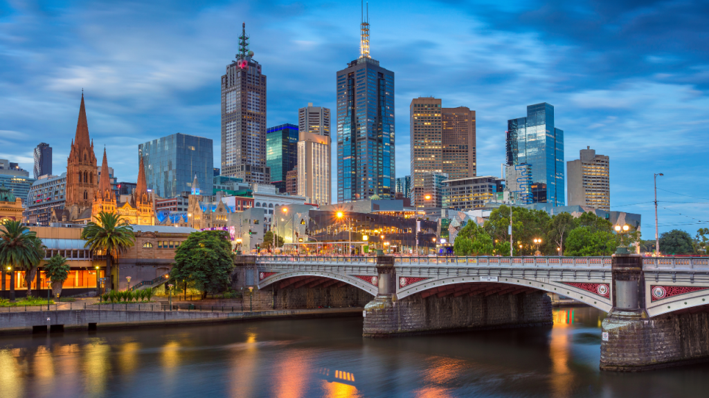 メルボルンは、ビクトリア州の州都で、オーストラリア大陸南東部、ポート・フィリップ湾に面したヤラ川河口の港市である。近代的で忙しい大都市のイメージのシドニーと比べると、歴史的な建物や文化が残り、落ち着いて住みやすい印象を持たれている。ロンドン、ニューヨーク、パリに次ぐ多さで世界の学生が学ぶ学術都市でもある。メルボルンはヴィクトリア女王時代の建築物がロンドンに次いで、世界中で最も多く残っている都市としても知られ、街中にはカフェも多く、ヨーロッパ文化を色濃く感じることができる。また、中心地から少し離れたメルボルン・パーク はテニスの4大大会の一つである全豪オープンの開催地である。
