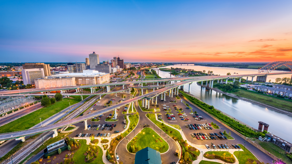テネシー州西端、ミシシッピ川に面する都市。綿花や木材の集散地であると共に近辺の商工業の中心地である。世の中に影響を与えたブルース、ソウル、ロックンロールの発祥の地として有名で、エルビス・プレスリーや B.B. キングらがアルバムを収録した名高いサンスタジオや、プレスリーの邸宅グレイスランドは人気のスポットです。