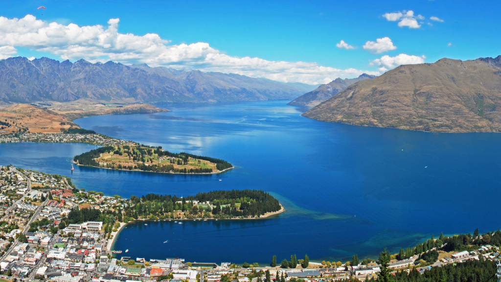 クイーンズタウンは、ニュージーランド南島のオタゴ地方の内陸、ワカティプ湖畔に面した町である。名前は周囲の山々に囲まれたその美しさが「ヴィクトリア女王にふさわしい」と名づけられたことに由来する。世界的に有名な観光・保養地であり、夏にはバンジージャンプやパラグライディング、ゴルフ、湖でのジェットボート、釣りなどが楽しめ、冬には周囲のコロネット・ピーク (Cornet Peak) やリマーカブルズといったスキー場でスキー・スノーボード、蒸気船での観光、カジノでのギャンブル、食事などを楽しむこともできる。クイーンズタウンはバンジージャンプ発祥の地としても有名である。