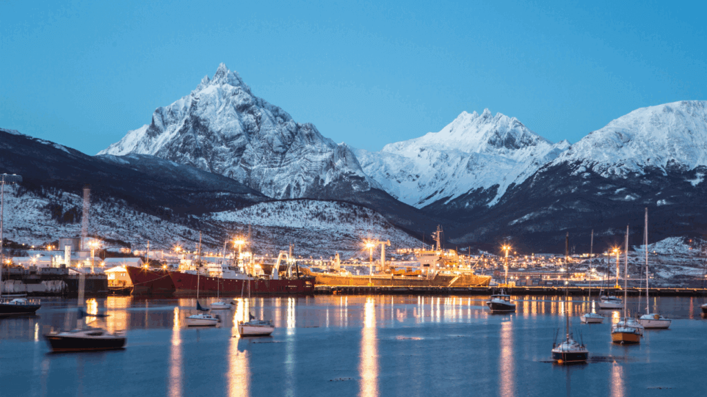 ウシュアイアは、アルゼンチン南端、フティエラ・デル・フエゴ州の州都。世界最南端の都市であるとされている。気候は1年を通じて冷涼である。夏でも最高気温は摂氏15度程度。しかし冬は緯度の割には寒さが厳しくなく、最も寒い7月の最低気温でも氷点下2度程度、平均気温は摂氏0度である。ウシュアイアはフエゴ島国立公園観光の基地・南極観光の拠点であり、氷河を目当てに多くの観光客が集まる。