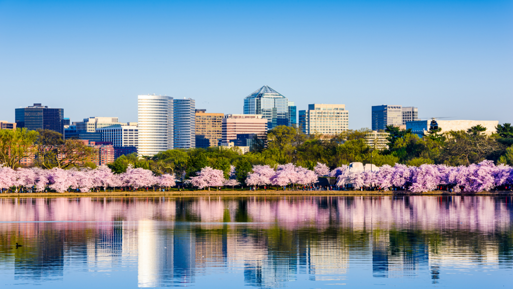 アメリカ合衆国の首都で、メリーランド州とヴァージニア州に挟まれたポトマック川河畔に位置する小さめの都市。ここは全米50州のどの州にも属さない、連邦政府直轄の地区として出来上がった町。特別行政区には連邦政府の立法、行政、司法の機能だけが存在し、住民のほとんどが公務員と弁護士と言われている。