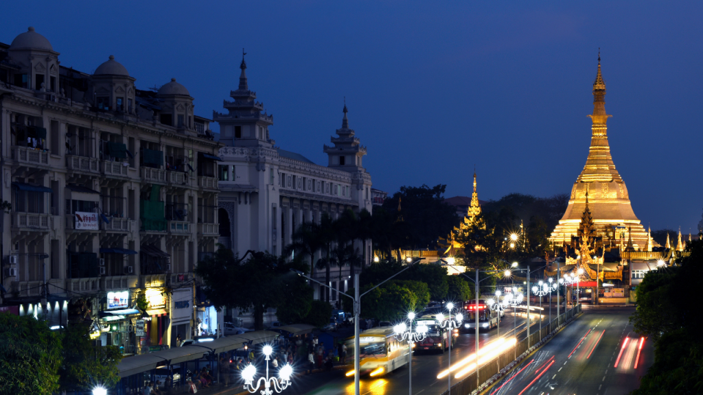 ヤンゴンはミャンマーの旧首都で、ヤンゴン管区の州都。旧名称はラングーンで、名前は「戦いの終わり」を意味する。もともとは、シェダゴン・パゴダを中心にした小さな漁村から町が発展した。かつて首都だった面影を色濃く残し巨大な仏教施設やイギリスによる植民地時代のコロニアル建築の歴史的建造物などが多く残っています。