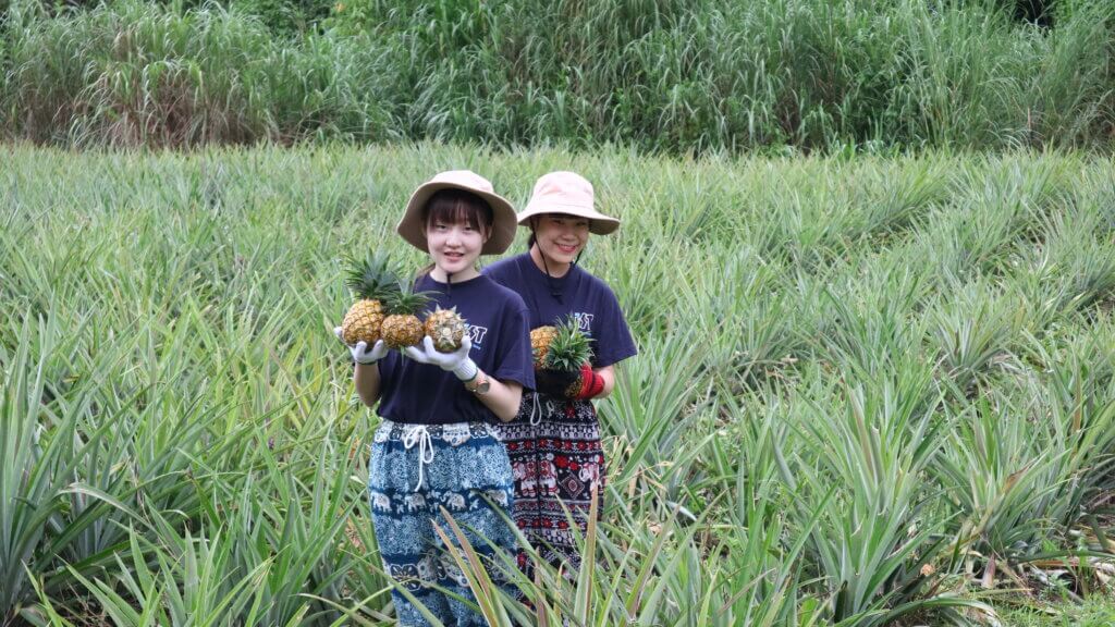 パイナップル畑でパイナップルをとります日本ではなかなかできない経験に参加者の皆さんも感動