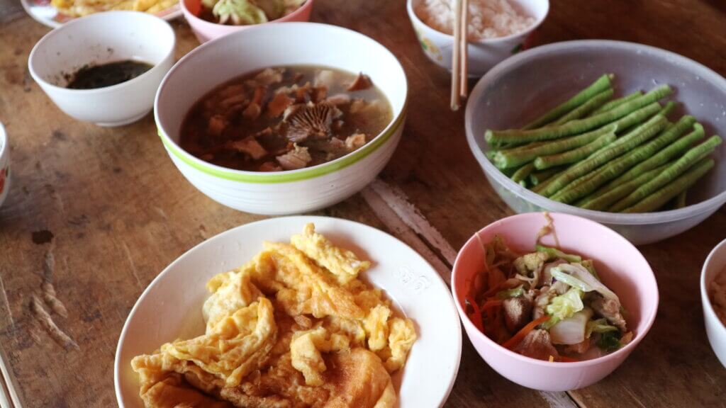 ホームステイ先のお母さんが作ってくれたご飯を毎日食べます山岳民族のお米は日本のお米に近くとても食べやすくおいしいです!